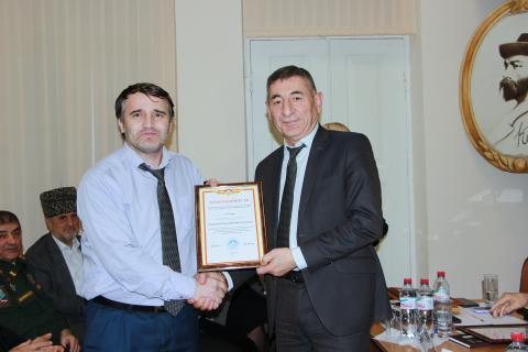 Руководителя аварской секции Союза писателей Дагестана и медиагруппы «Гумбет», редактора республиканского журнала «Дружба» Гамзата Изудинова наградили Благодарностью «За активную гражданскую позицию, работу по сохранению мира и единства между народами республик Северо-Кавказского федерального округа средствами литературного творчества».