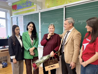 В преддверии Дня учителя помощник депутата Дербентского горсобрания Баба Кулиев вместе с активистами партии «ЕР» и Движения Первых Дербентского педколледжа им. Г. Б. Казиахмедова поздравили педагога первой гимназии.