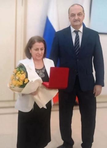 Знак высокого признания вручил педагогу лично Глава республики Сергей Меликов.
