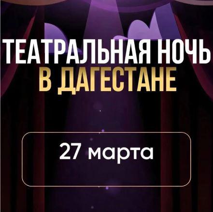 27 марта Дагестан присоединится ко Всероссийской акции «Ночь театрального искусства», приуроченной ко Всемирному дню театра и 150-летию Союза театральных деятелей России.