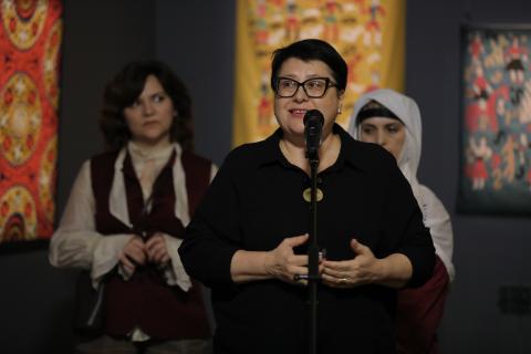 В церемонии открытия выставки также приняли участие представители династии Исмаиловых, которые уже на протяжении 20 лет продолжают традиции своего рода и создают настоящие произведения искусства, отражающие историю, культуру и духовные ценности своего народа. В экспозицию вошло большое количество работ, о которых рассказала мастерица Джавгарат Исмаилова-Монакова, поделившись секретами создания вышивок и раскрыв сакральное значение используемых в работе символов и цветов. Её рассказ дополнила директор Акушинского историко-краеведческого музея Зубалжат Мирзоева, любезно предоставившая работы из фондов данного культурного учреждения.