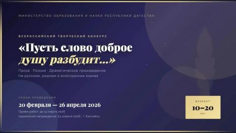 Министерство образования и науки Республики Дагестан объявляет старт Всероссийского творческого конкурса «Пусть слово доброе душу разбудит…»!