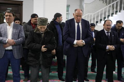 После завершения ифтара его участники совершили коллективный вечерний намаз в центральной мечети Махачкалы.